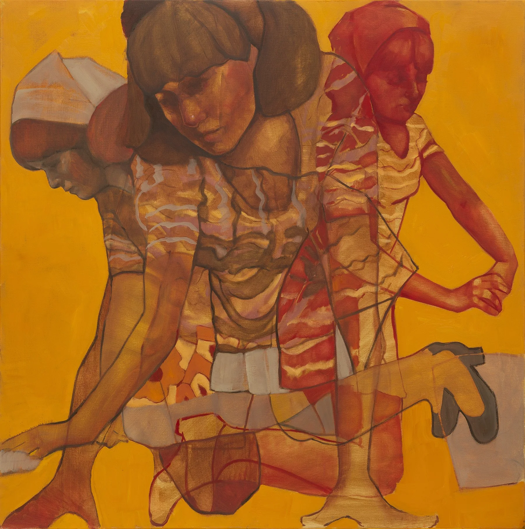 “My first solo show in the USA brings together a collection of paintings made in the last two years that explores themes of gender roles and our shared history of familial and societal expectation. It speaks to a curiosity about permission, expectation and pressures especially in the position of women that we are still unpicking.”